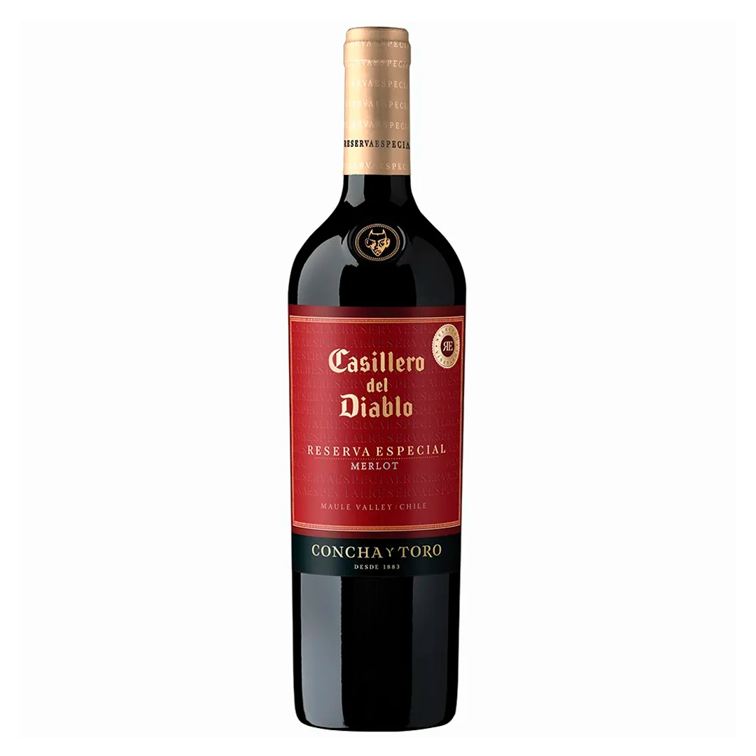 Vino Casillero del Diablo Reserva Especial Merlot 2022 750ml – Vino tinto suave con aromas de frutos rojos, vainilla y toque de madera. Cuerpo medio y final equilibrado. Ideal para comidas ligeras o quesos blandos.