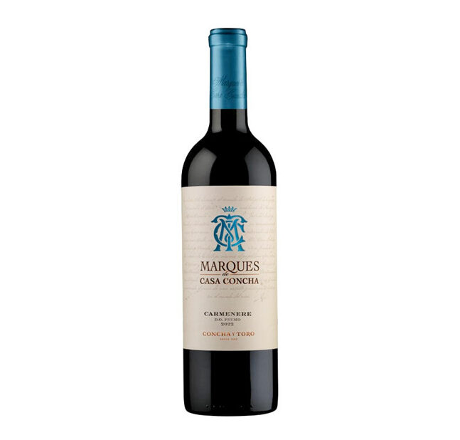 Vino Marqués de Concha Carmenere 750ML – Carmenere reserva con notas especiadas, frutos negros y un perfil suave, con paso elegante por barrica.